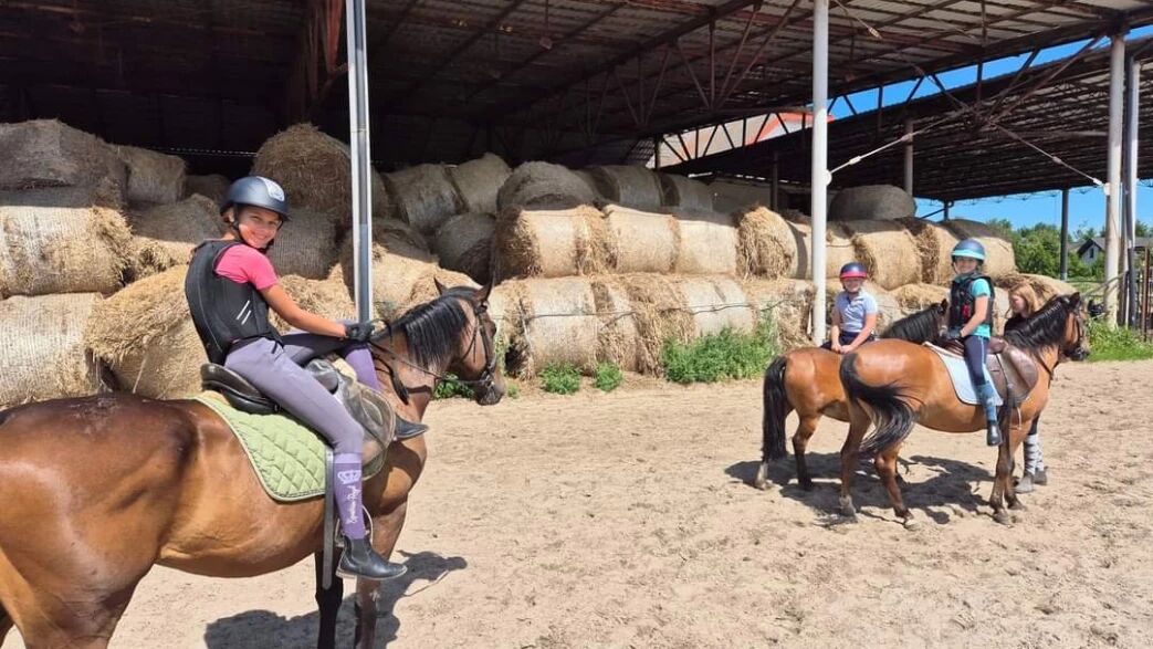 dodatkowo dzieci będą uczestniczyć w pracy stajni tj.: pomaganie w karmieniu koni, czyszczenie i siodłanie, obsługa koni przed i po zakończeniu jazd (ok. 4 godz.).